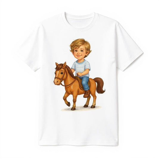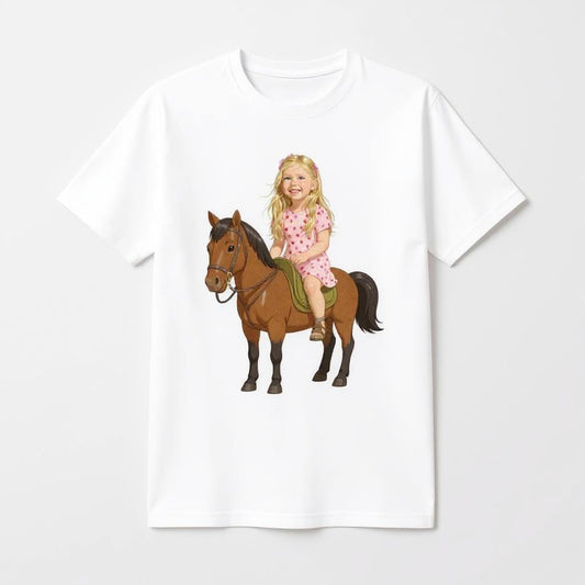 Custom Watercolour Rider Photo T-shirt - Turn Your Child Into a Cartoon!