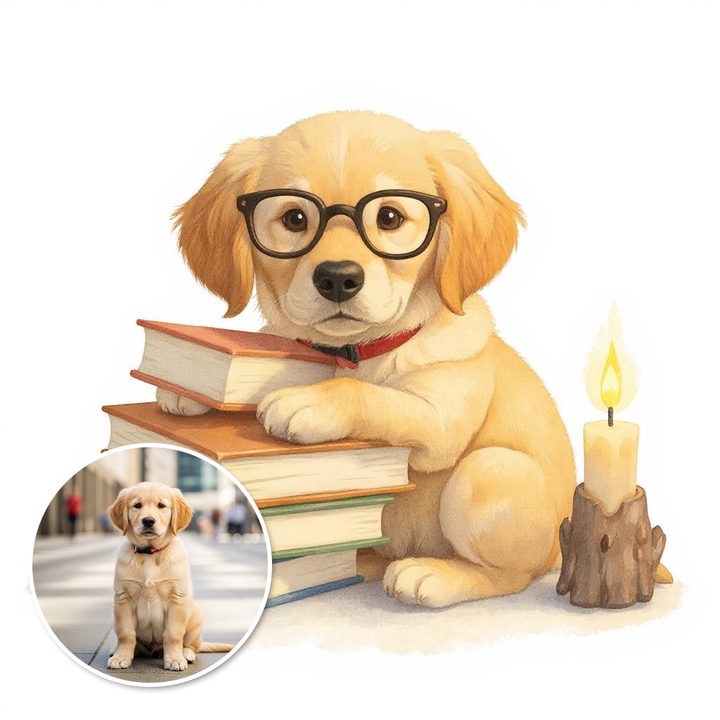 See the magic happen in seconds! Watch your favorite person or pet become the world's cutest bookworm.