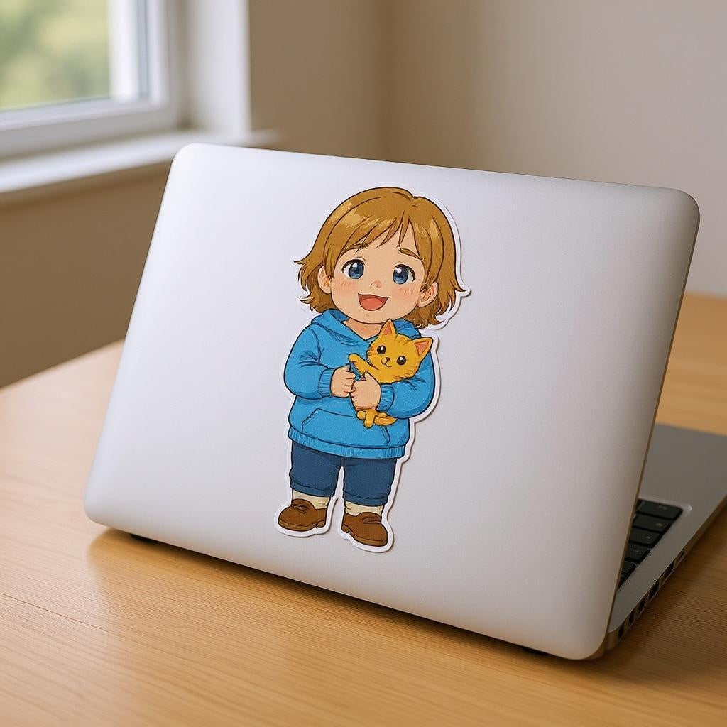 See the magic happen in seconds! Watch your little one hold their kitten bestie in this super sweet vinyl sticker.