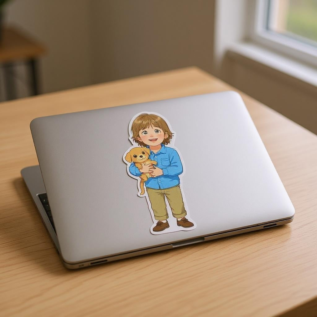 See the magic happen in seconds! Watch your little one hold their puppy bestie in this super sweet vinyl sticker.