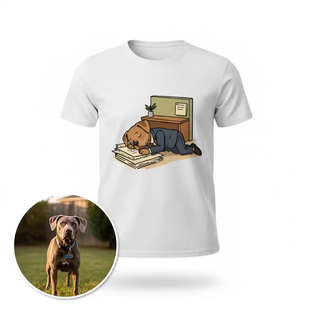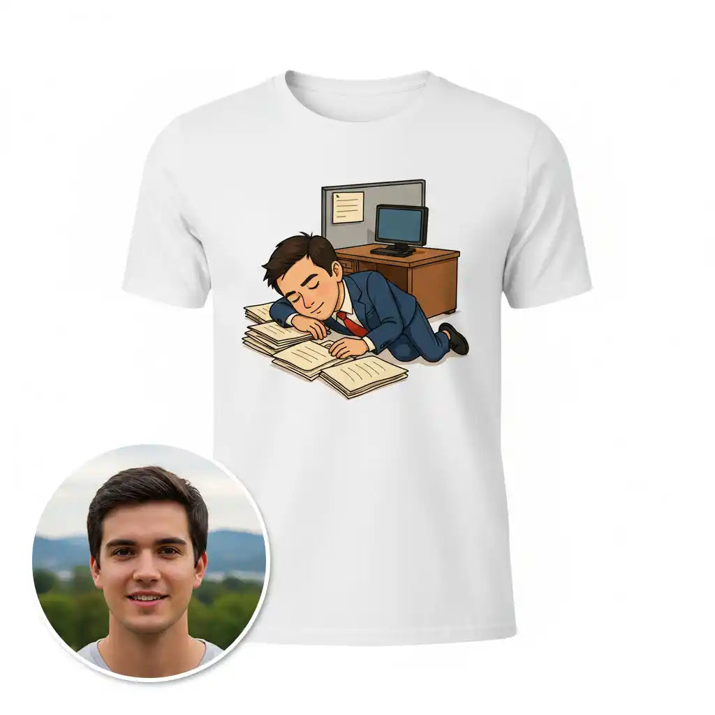Our "The Chief Sleep Officer" t-shirt turns your photo into a stylized character who has adorably passed out on a pile of paperwork. In our unique art style, we celebrate their dedication! Simply upload a picture for a hilarious and instant preview the perfect gift for the overachiever, the student, or the pet who takes napping very seriously.