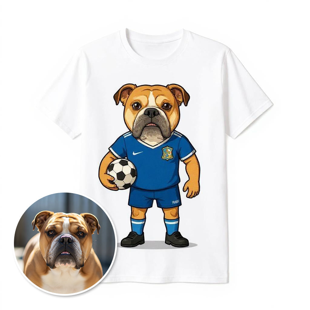 See the magic happen in seconds! Watch your favorite pet or person become the star player of their dream team with this amazing soccer t-shirt.