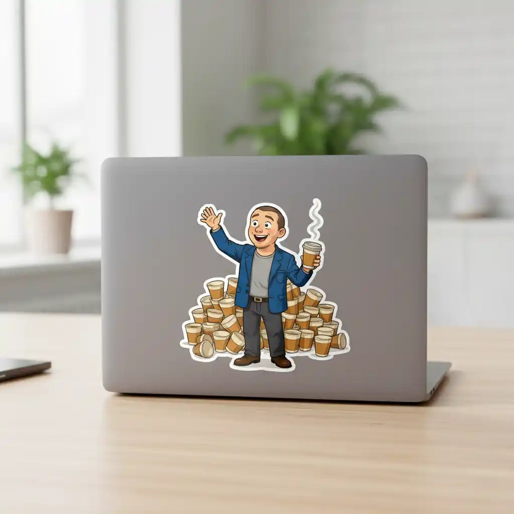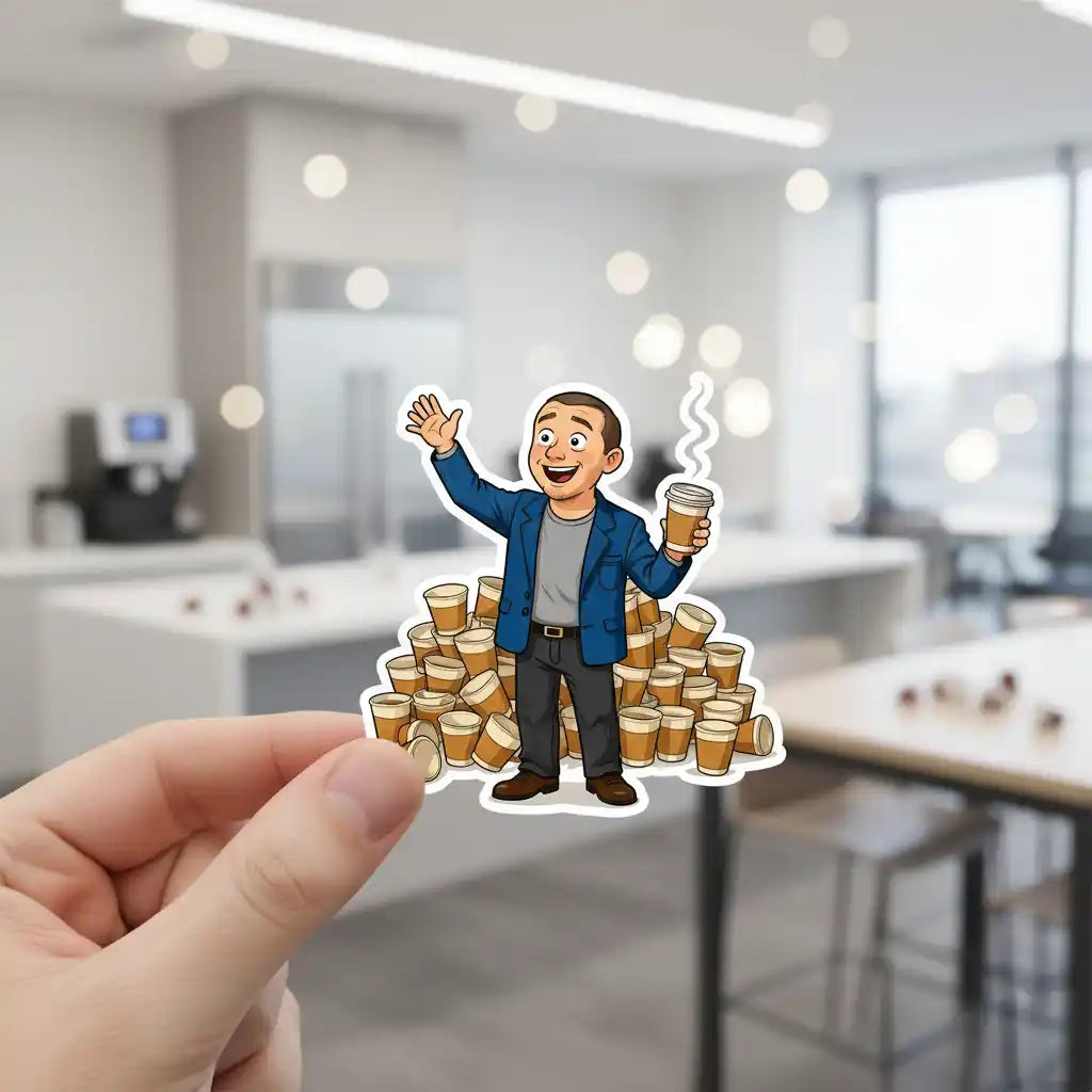 Our "The Intern" sticker transforms your photo into the ultimate go-getter, hand raised and ready to contribute. Powered by ambition and caffeine, they're surrounded by a proud tower of empty coffee cups in our unique, stylized art style. Just upload a picture for an instant preview—a fun, one-of-a-kind gift for the rising star in your life!