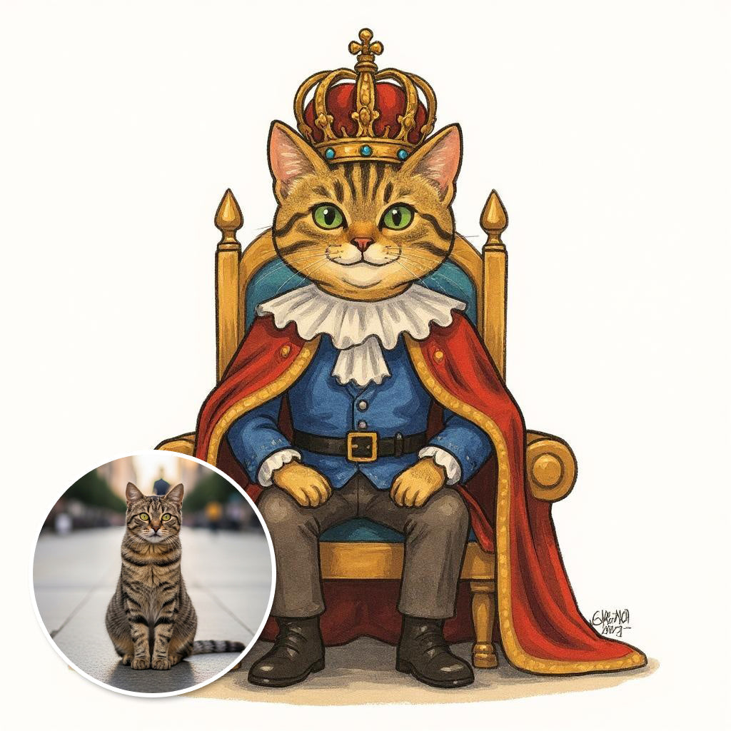 See the magic happen in seconds! Watch your favorite pet or person take their rightful place on the throne as a noble king or queen.
