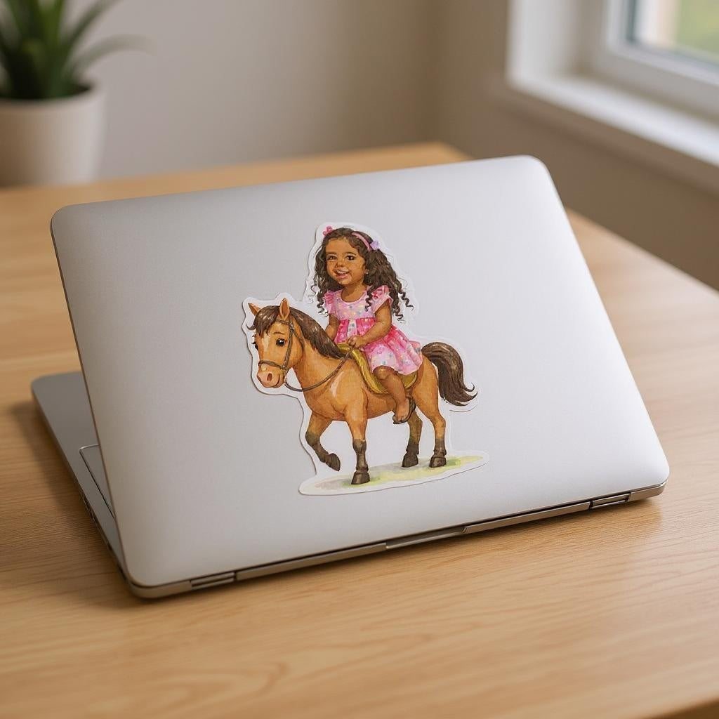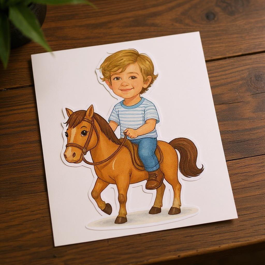 Custom Watercolour Rider Photo Sticker - Turn Your Child Into a Cartoon!