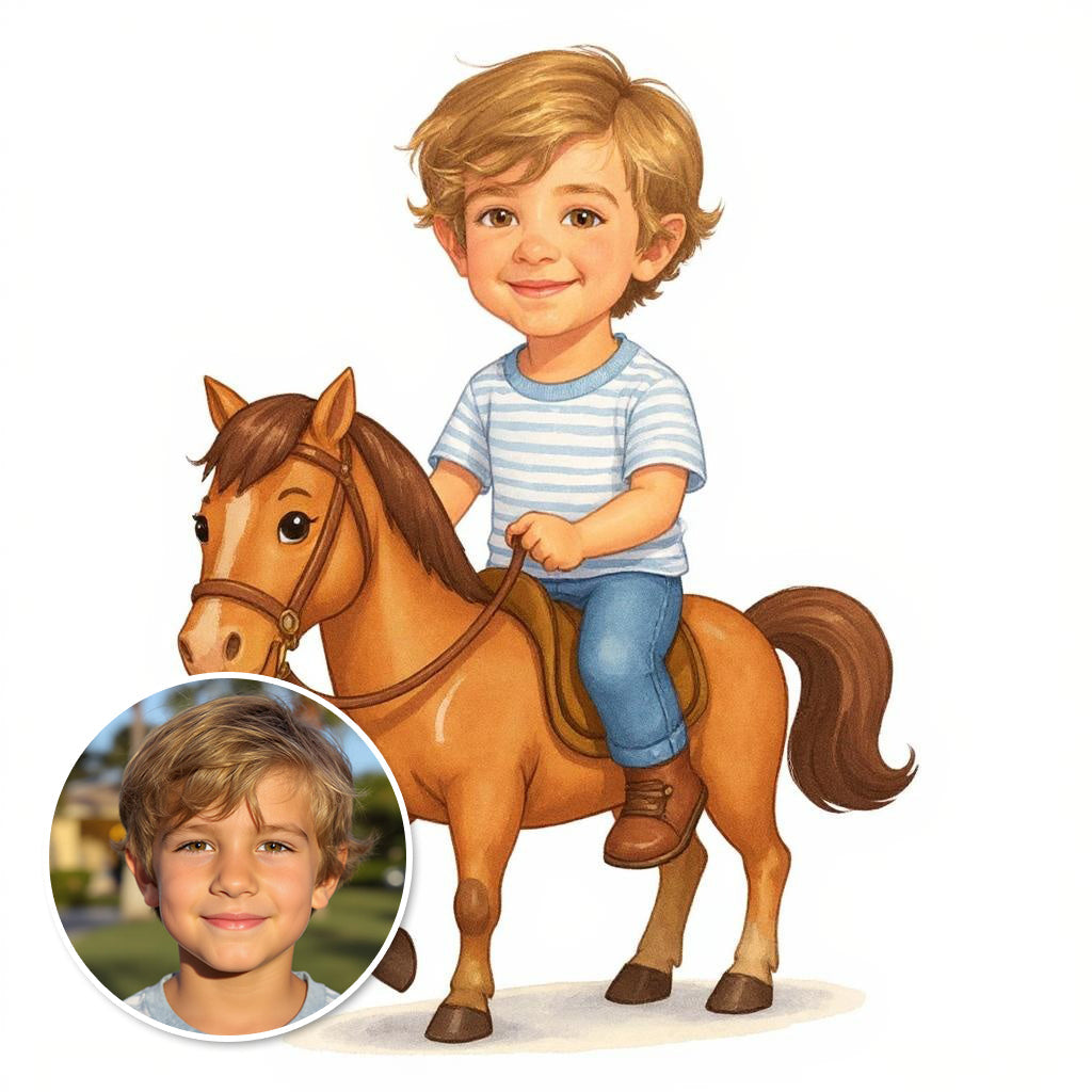 See the magic happen in seconds! Transform your little one into a cartoon watercolour rider and watch their face light up.