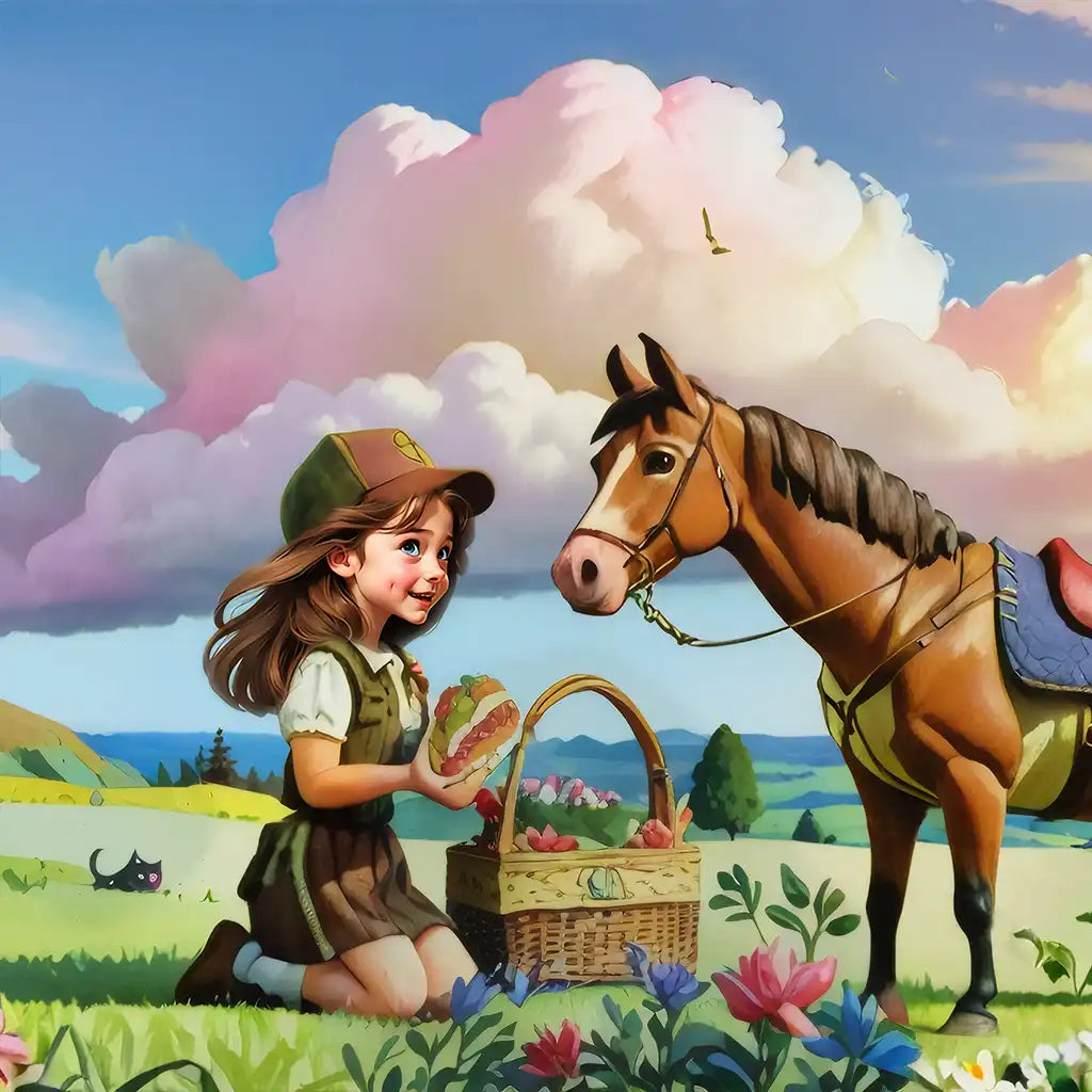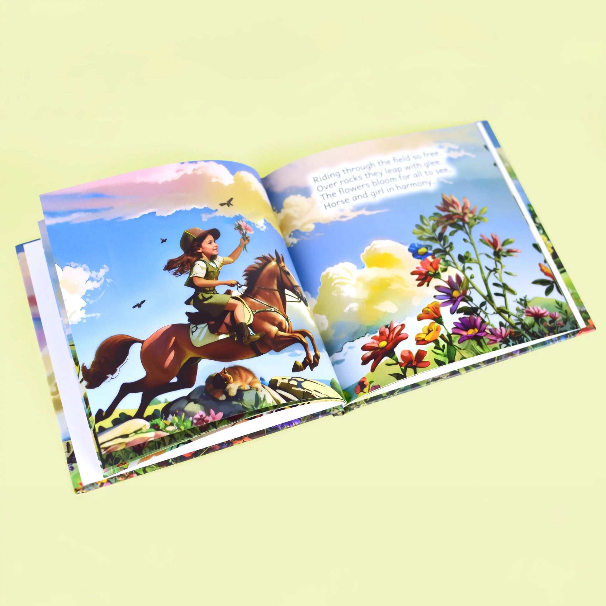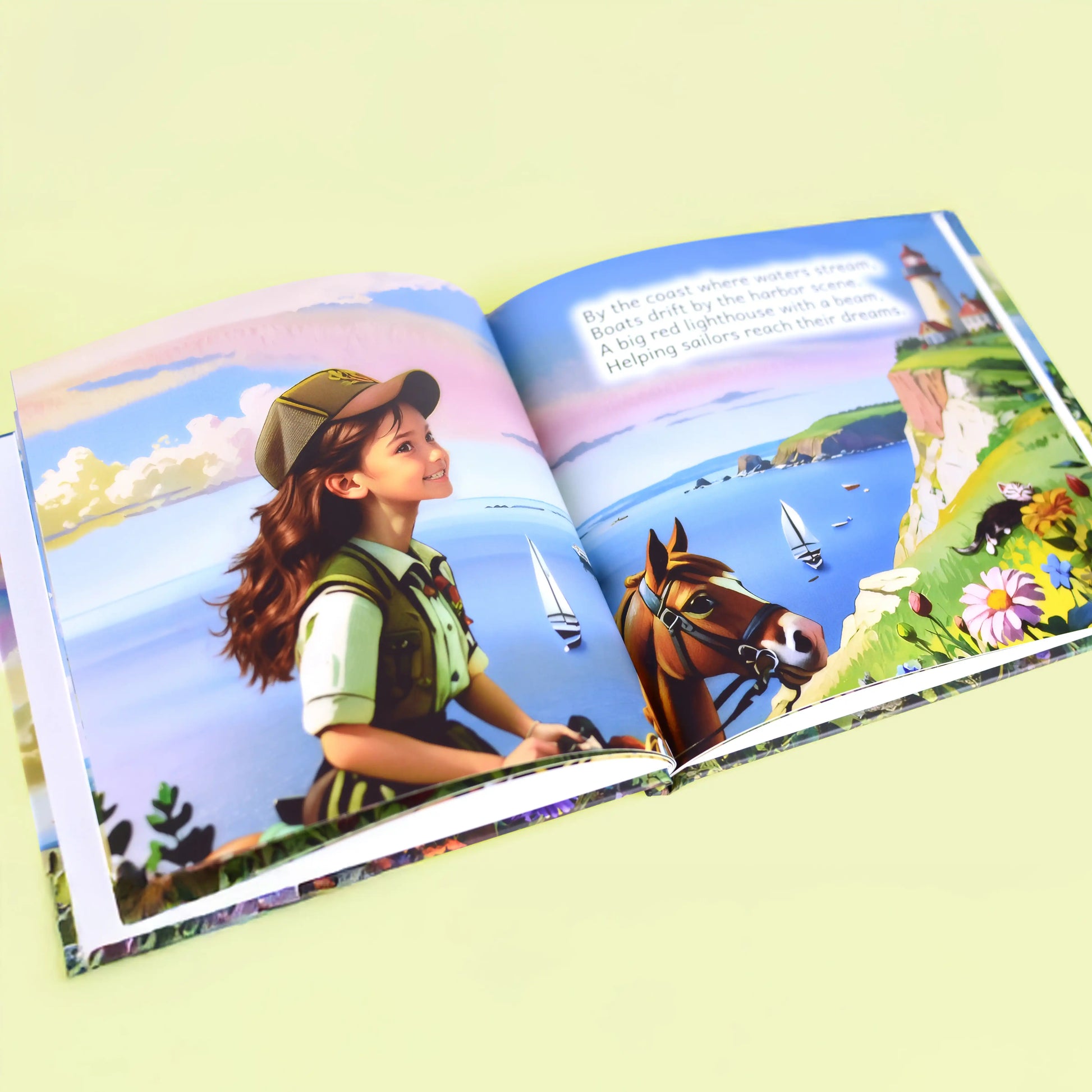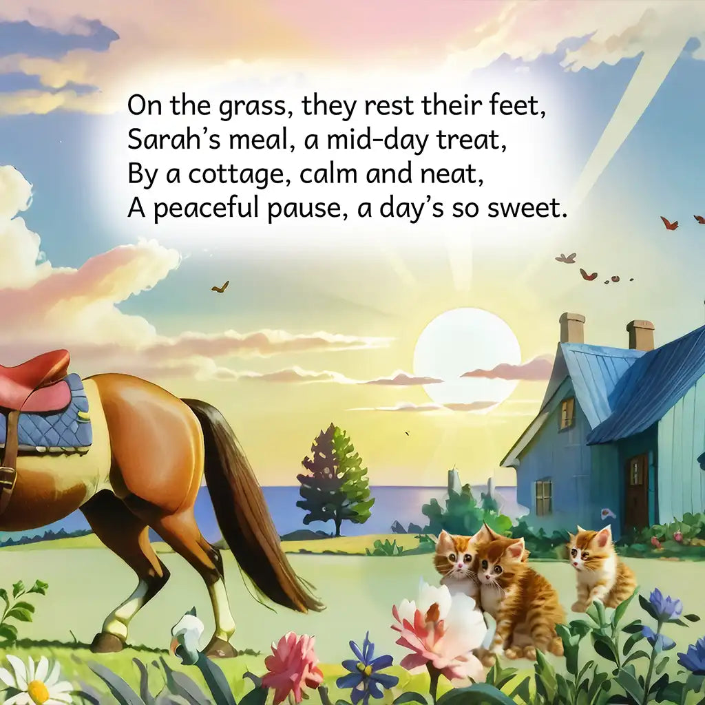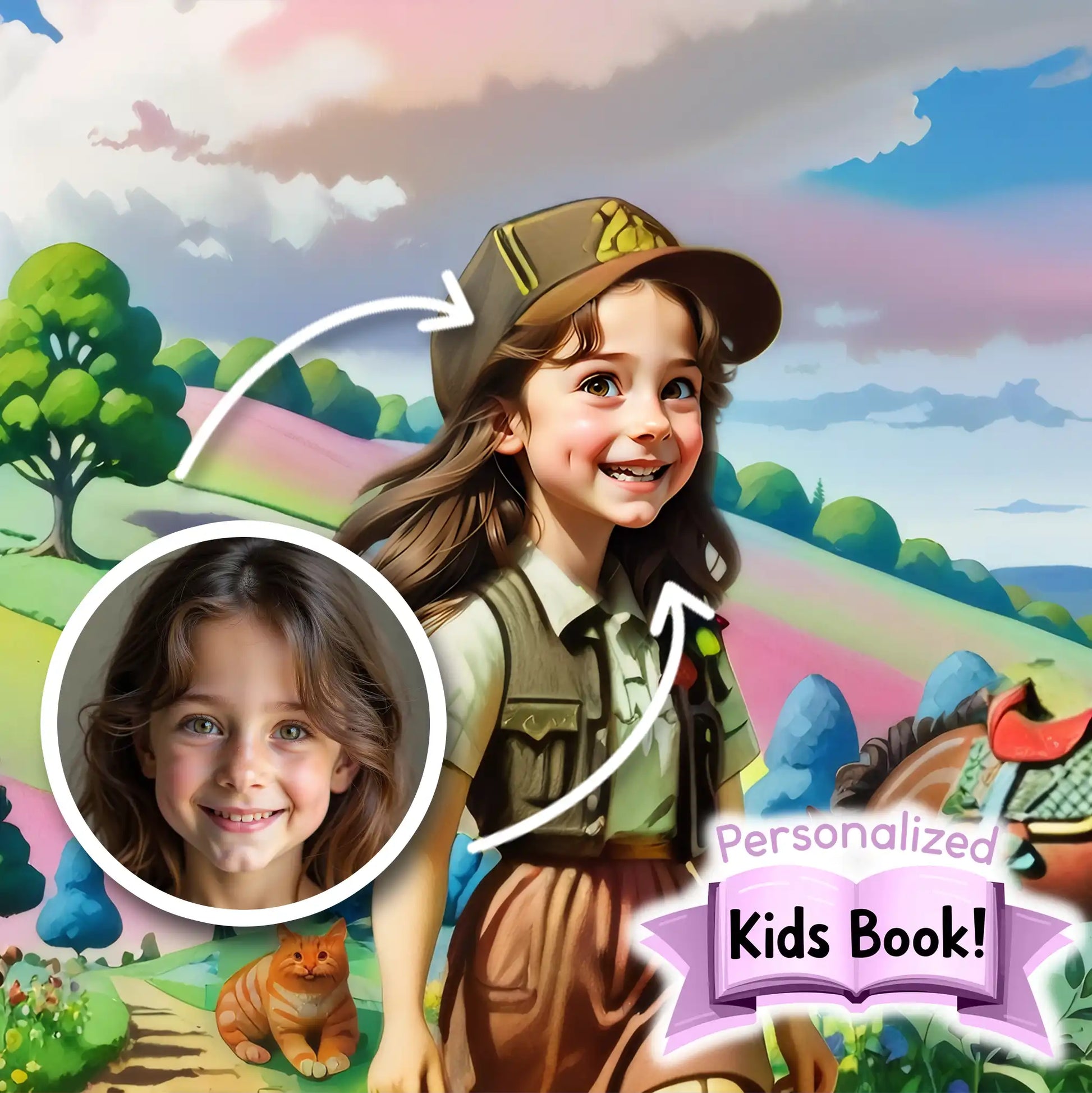 This captivating tale takes them on an adventure through a picturesque countryside, where they’ll encounter vibrant farms, serene coastlines, and charming orchards. Your child will experience the magic of a perfect day spent exploring the great outdoors with their very own horse!